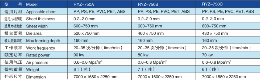 RYZ-750系列全自動(dòng)液壓制杯機(jī)是我司開(kāi)發(fā)研制的高速度,高效率的全自動(dòng)塑料容器的成型機(jī)。該機(jī)適用于生產(chǎn)PS,PP,PVC,PET,ABS等塑料片材
